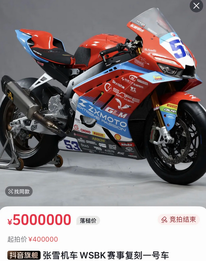 正式拍卖开始,WSBK夺冠车53号复刻版,不到1分钟结束秒杀,张雪直呼没想到!