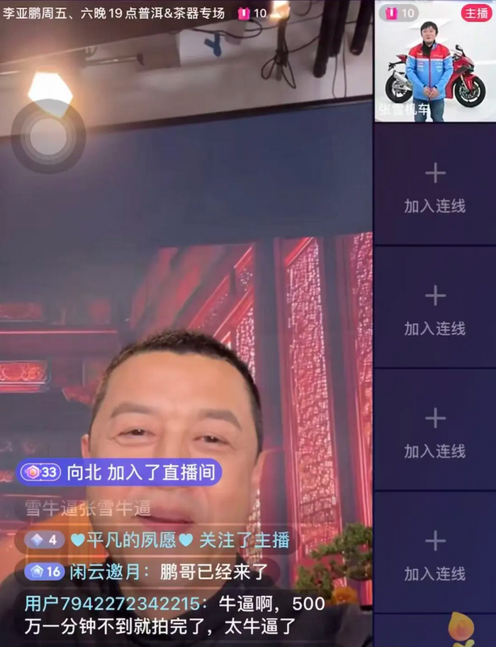 拍卖完了以后,张雪还和李亚鹏进行了视频连线,李亚鹏表示进来的时候就拍到300万,等我下单的时候,就拍完了,太快了没抢到。